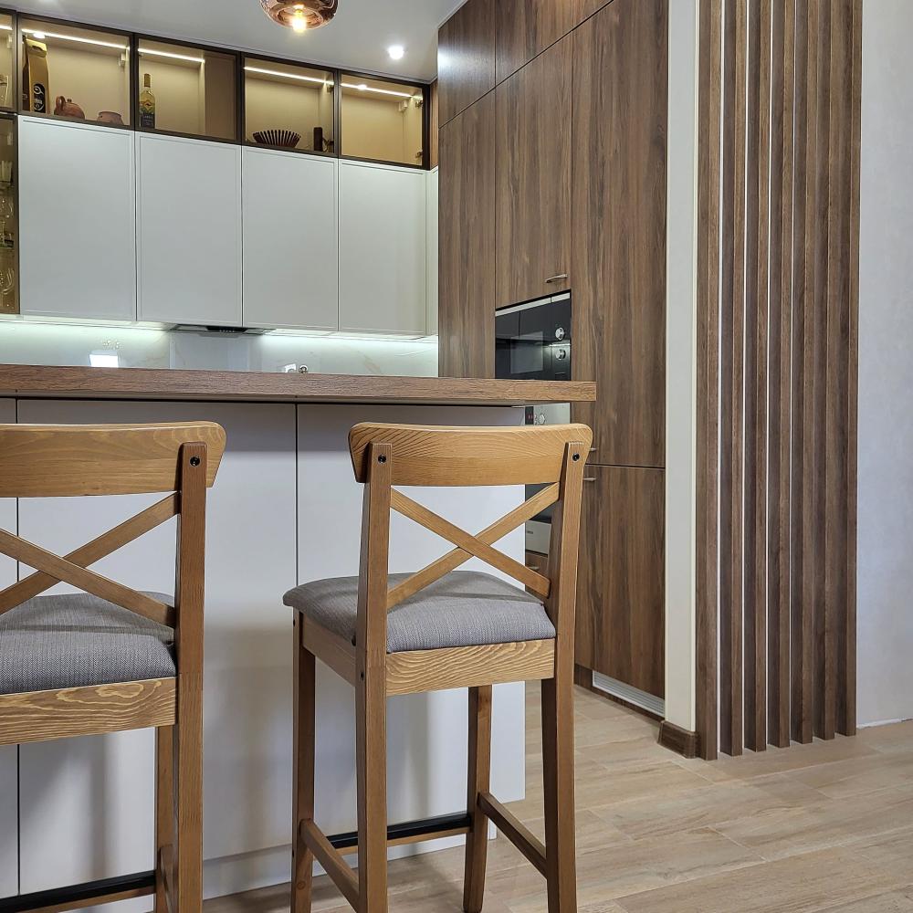 Привет, дорогой друг! Благодарим за то, что добрался до этого блока! Спешим представиться: мы Евгений и Юлия, пара некогда энтузиастов из г.Тольятти, вот уже более 12 лет занимаемся проектированием, изготовлением и установкой кухонь по индивидуальным проектам. Для нас эта работа никогда не была работой как таковой - все это время мы просто делали людей чуть счастливее. И в 2022 году количество семей, обладателей кухонь нашего производства перевалило за 3000!