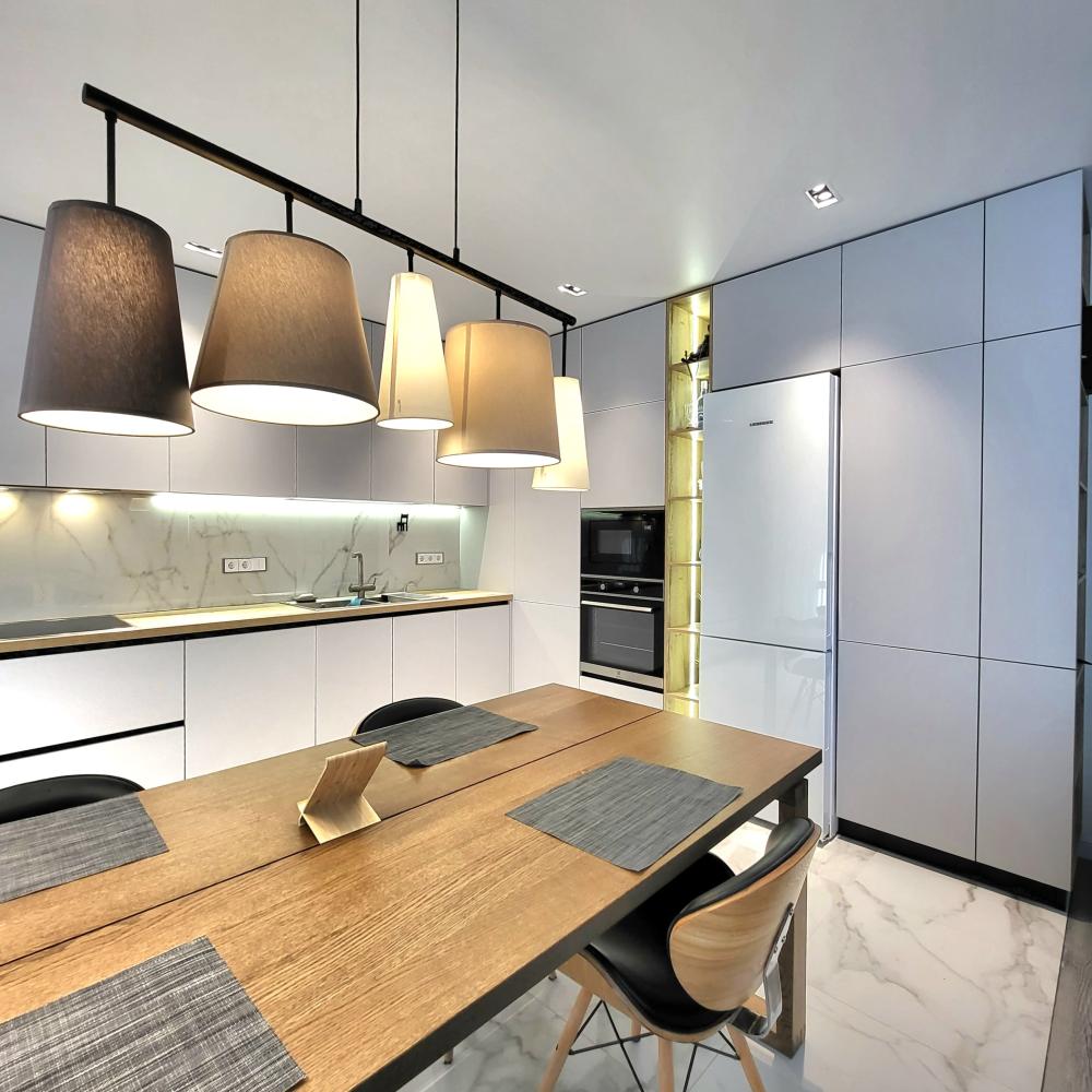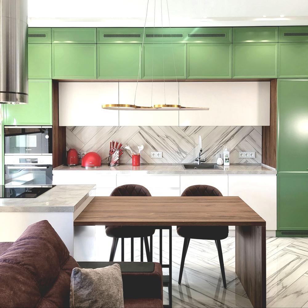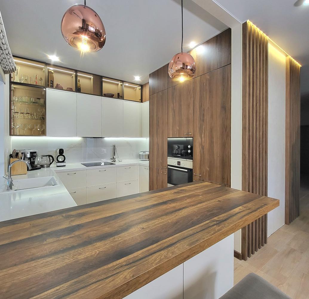 Привет, дорогой друг! Благодарим за то, что добрался до этого блока! Спешим представиться: мы Евгений и Юлия, пара некогда энтузиастов из г.Тольятти, вот уже более 12 лет занимаемся проектированием, изготовлением и установкой кухонь по индивидуальным проектам. Для нас эта работа никогда не была работой как таковой - все это время мы просто делали людей чуть счастливее. И в 2022 году количество семей, обладателей кухонь нашего производства перевалило за 3000!