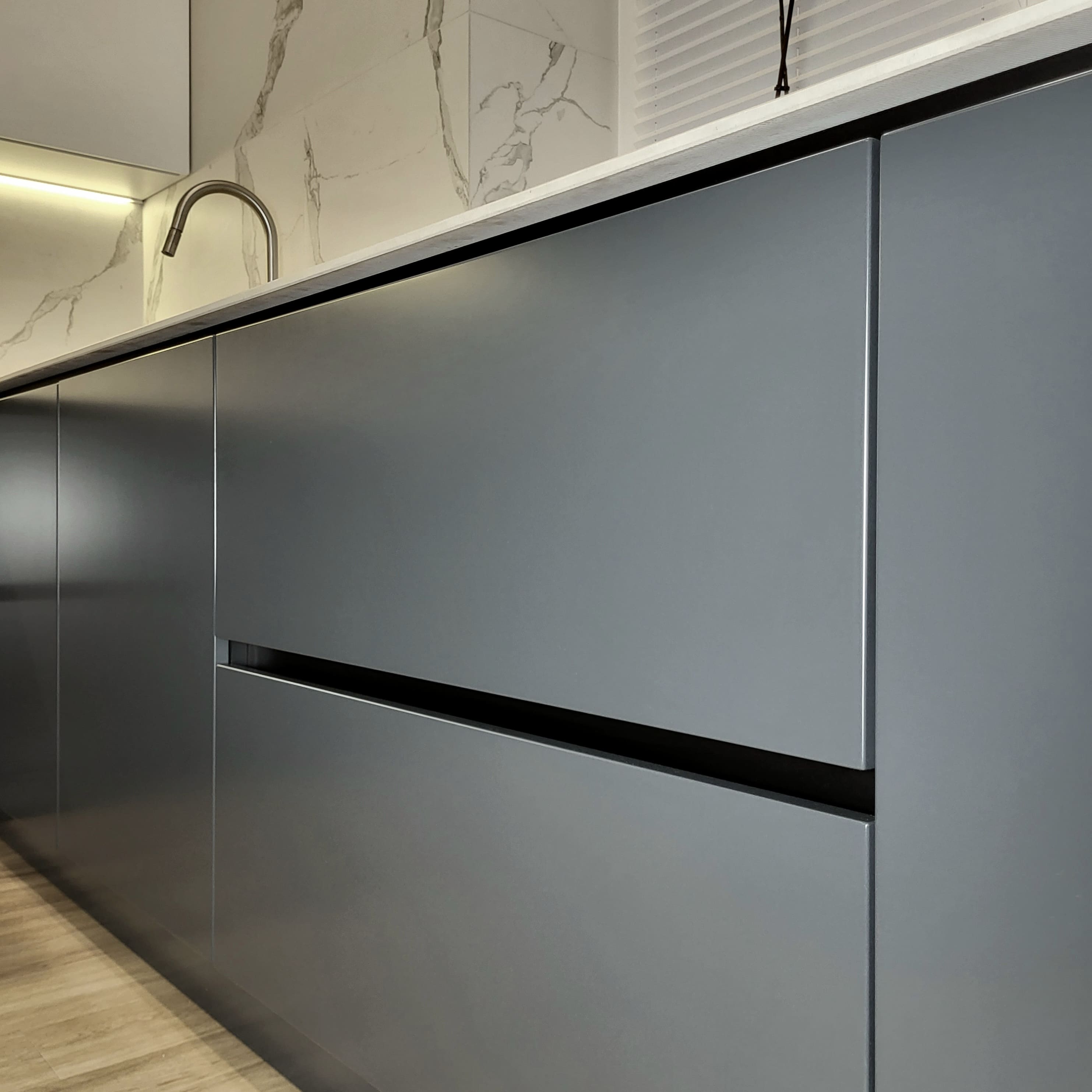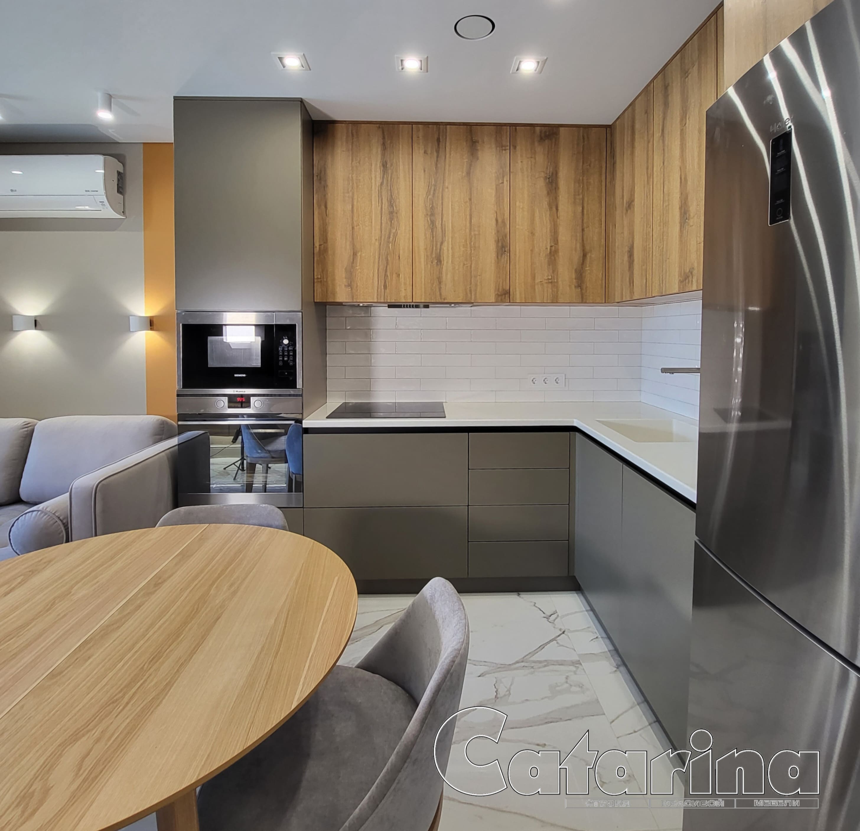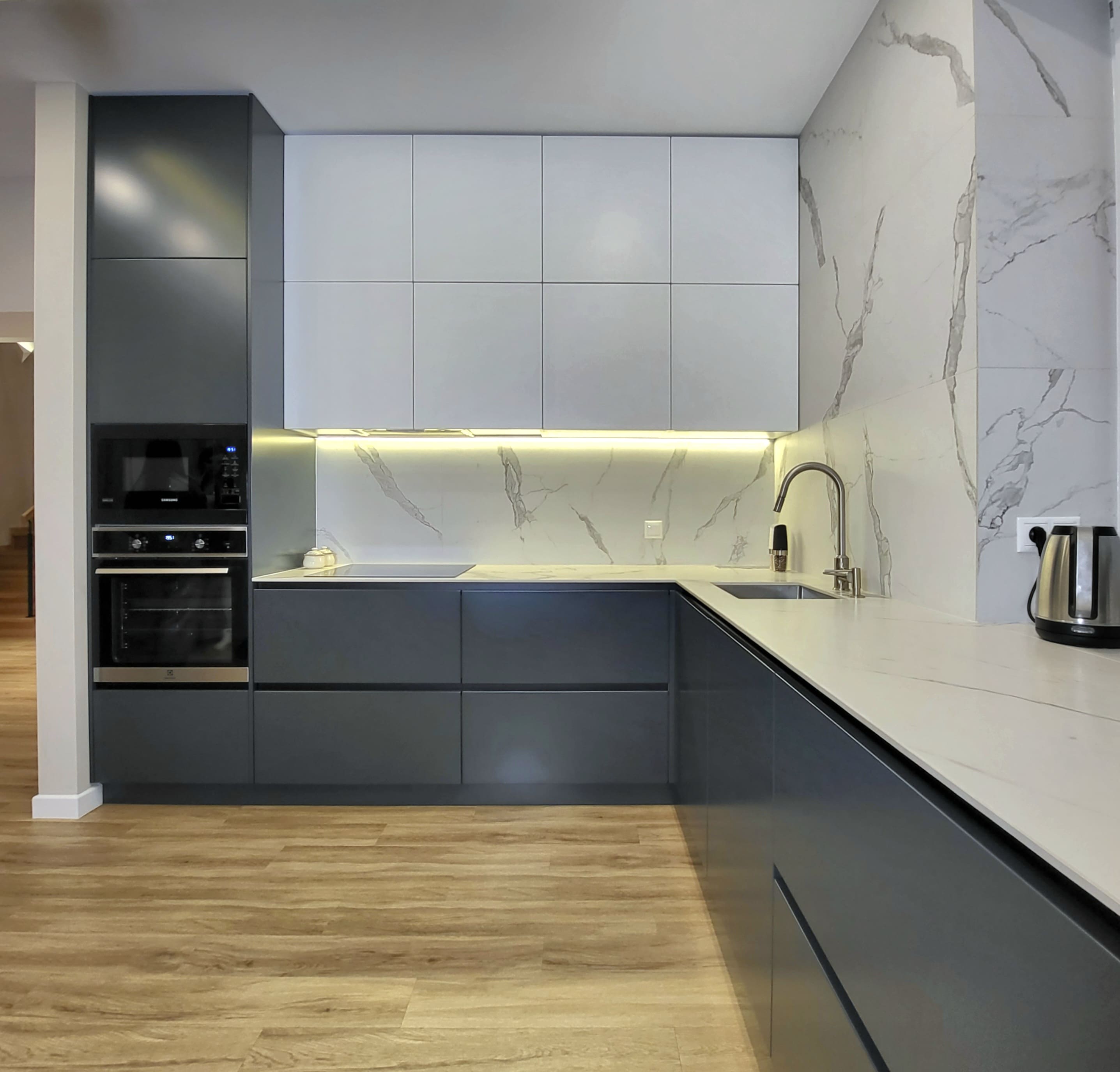 Привет, дорогой друг! Благодарим за то, что добрался до этого блока! Спешим представиться: мы Евгений и Юлия, пара некогда энтузиастов из г.Тольятти, вот уже более 12 лет занимаемся проектированием, изготовлением и установкой кухонь по индивидуальным проектам. Для нас эта работа никогда не была работой как таковой - все это время мы просто делали людей чуть счастливее. И в 2022 году количество семей, обладателей кухонь нашего производства перевалило за 3000!
